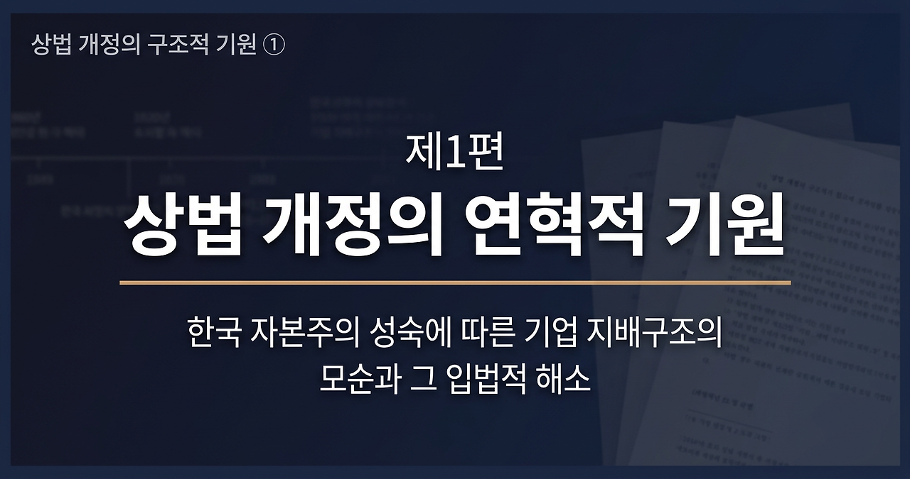 서론에서 제시한, 이번 세 차례의 상법 개정을 구조적 모순의 임계점에서 나온 입법론적 해법이라는 것을 검증하려면, 그 모순이 어떻게 축적되어왔는지를 추적해야 한다. 상법 주식회사 편의 개정의 연혁은 한국 자본주의의 각 발전단계에서 기업과 주주, 지배주주와 소액주주 사이의 이해충돌이 법적으로 다뤄져 왔는지에 관한 기록이다. 이번 장에서는 상법 제정부터 2020년 상법개정까지의 맥락을 추적하며 반복되는 패턴을 찾아본다.