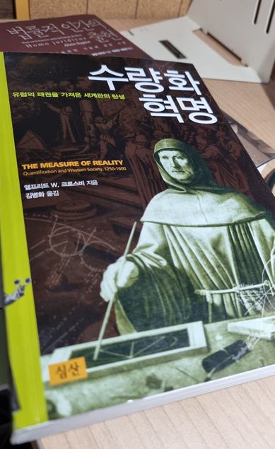 앨프리드 W. 크로스비의 <수량화 혁명>은 서구문명에서 ‘양적’ 실재가 ‘질적’ 실재를 대체하고, 나아가 양적인 변형을 일으키기 위한 기술을 발전시켜온 역사를 다룬다. 책은 결론 격인 3부를 제외하고, 수량화와 시각화 두 부로 나뉘는데, 1부에서는 측량과 표준화 등을 통해 수량적 사고가 자리잡아 근대 ‘수량화 혁명’의 기초가 쌓이는 필요조건들을 다루는 한편 2부에서는 그러한 사고들이 구체적으로 ‘시각화’라는 방법을 통해 ‘과학’과 ‘기술’로 발전할 수 있었던 충분조건들을 다룬다.